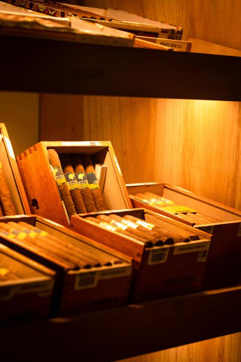 Explora nuestra exquisita variedad de puros y habanos, cuidadosamente seleccionados y resguardados en nuestra bodega bien surtida.